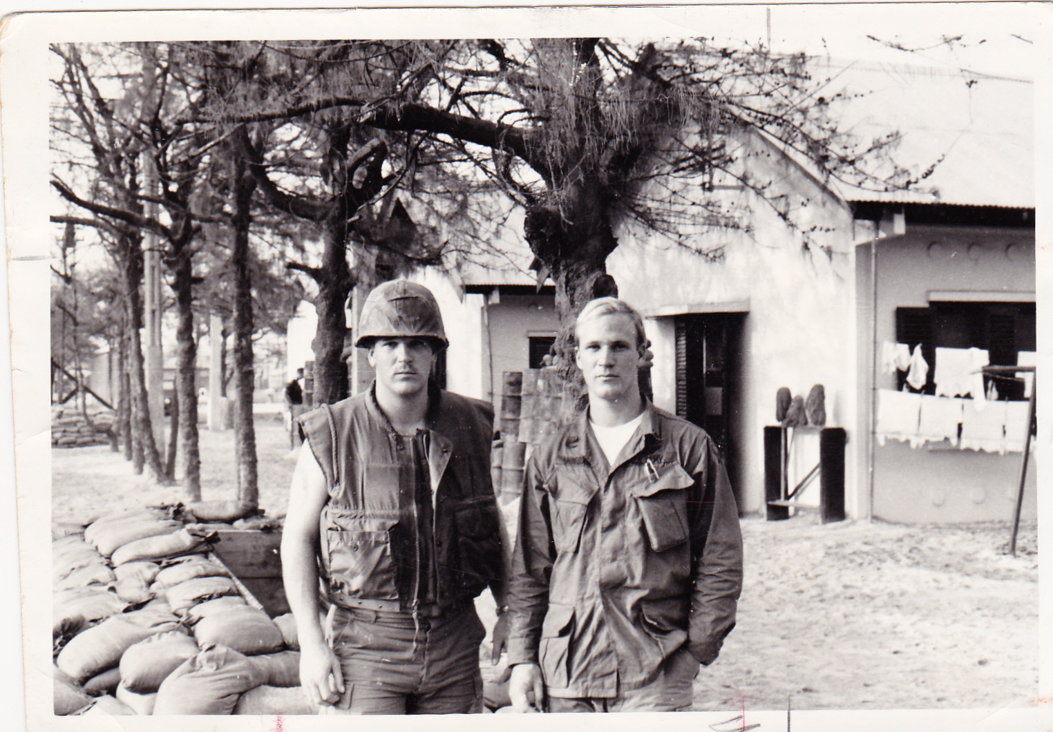 This is the photo taken by an unknown photographer of Sp/5 John P. Selberg US Army (right) and Corporal Edward Michael Selberg USMC (left) in DaNang. [Dated 1967]